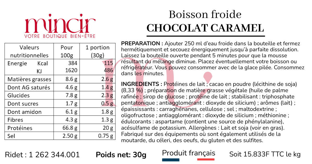 Très pratique à emporter, cette bouteille de boisson protéinée chocolat caramel est prête à shaker.