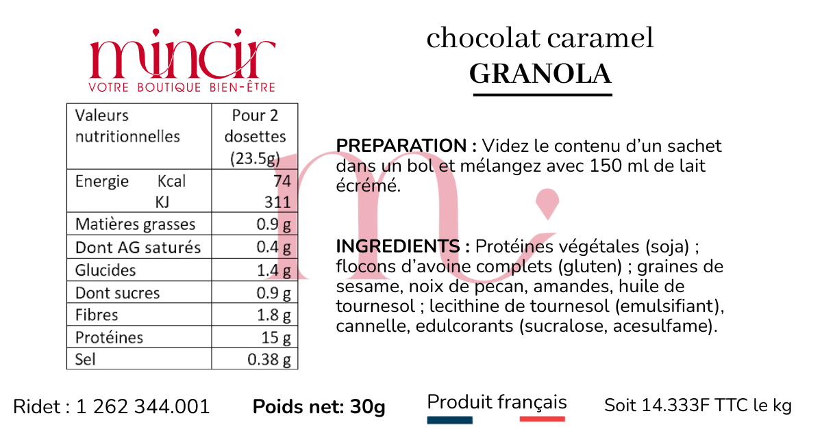 Préparation : Videz le contenu d’un sachet dans un bol et mélanger avec 150ml de lait écrémé.